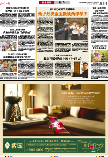 我省明晚提前上映《叶问2》
