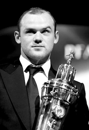 | 鲁尼手捧奖杯。 小新发 |