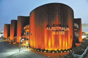 灯光下的澳大利亚馆犹如红色的城堡。