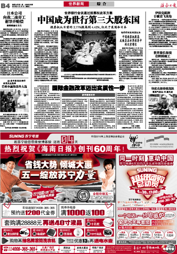 海南日报 世界新闻 012 2010-04-271 2010年04月27日 星期二