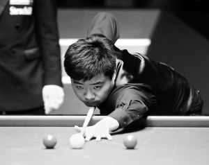 | 丁俊晖在比赛中击球。 新华社发