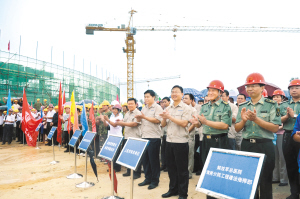 | 位于三亚海棠湾的解放军总医院海南分院目前正在加紧建设中,施工现场有3000多名工程技术人员和工人日夜奋战。4月27日上午,解放军总医院海南分院各参建单位冒雨参加分院工程建设会战誓师大会,誓把分院建成良心工程、放心工程、满意工程。