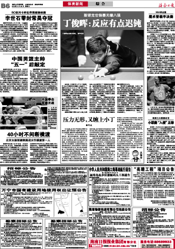 海南日报 体育新闻 014 2010-04-281 2010年04月28日 星期三