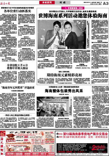 海南日报 本省新闻 003 2010-04-281 2010年04月28日 星期三