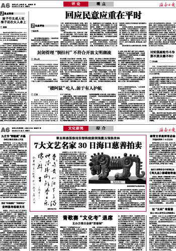 7大文艺名家30日海口慈善拍卖