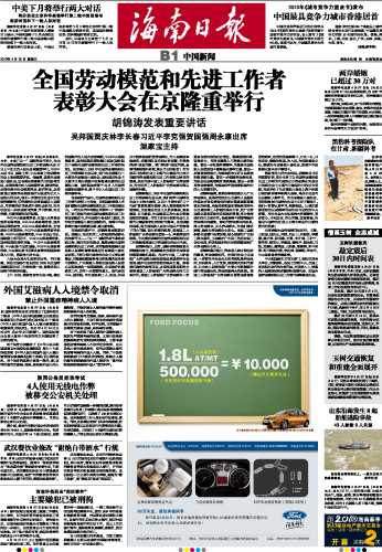 海南日报 中国新闻 009 2010-04-281 2010年04月28日 星期三