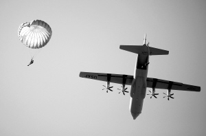 4月27日,保加利亚伞兵从美国C-130大力神运输机上跳伞。当日,保加利亚与美国代号为“色雷斯之春2010”的联合军事训练在保加利亚普罗夫迪夫的一个军用机场进行。演习的项目包括伞兵着陆、货物运输、白天和夜间跳伞等。保加利亚国防部长和美国驻保大使观看演习。此次联合军事训练为期12天,始自19日,将在30日结束。 新华社/保通社