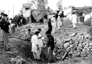 4月28日,巴基斯坦白沙瓦市郊28日清晨发生自杀式爆炸袭击事件,造成至少4名警察死亡、10人受伤。 新华社/法新