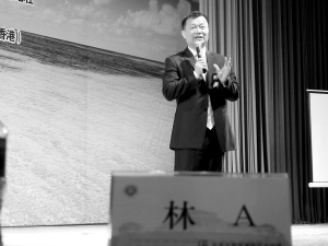 | “中国心灵富豪榜”发榜盛典暨新闻发布会上,林A发表演讲。本报记者 陈耿 摄 |