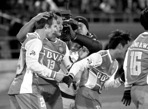 本报讯 北京时间4月28日,北京国安队在北京工人体育场迎来了亚冠小组赛的末轮生死战。最终国安依靠外援乔尔·格里菲斯和奥托在上下半场各入一球,以2:0击败日本川崎前锋队,在以E组小组第二的成绩晋级16强。