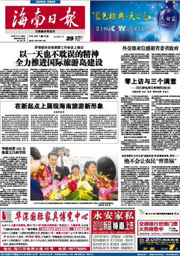 海南日报 头版 001 2010-04-291 2010年04月29日 星期四