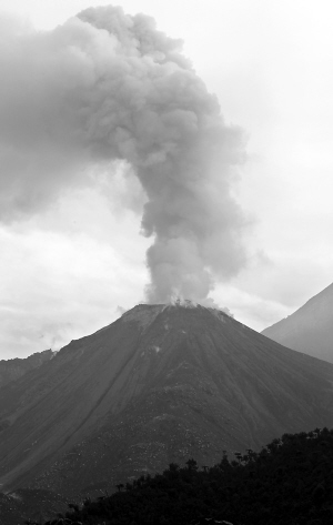 4月28日,在危地马拉的埃尔帕尔马附近, 烟尘从一座火山口喷发出来。 危地马拉圣地亚吉托火山从26日起开始喷出大量烟尘和火山灰,目前危地马拉民防部门已经发出橙色警报。 新华社/路透