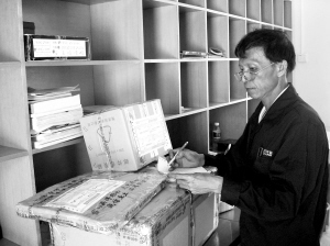 | 陈兴祯在登记当天到达的包裹、特快专递等。本报记者 郭景水 摄 |
