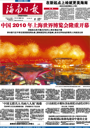 海南日报 首版 001 2010-05-011 2010年05月01日 星期六