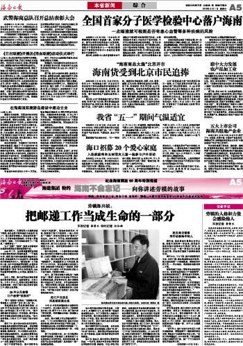 海南日报 本省新闻 005 2010-05-011 2010年05月01日 星期六
