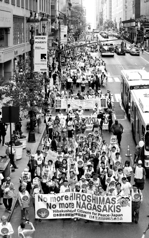 5月2日,人们手持反核标语参加在美国纽约街头举行的游行。 当日,超过万名来自世界各地的反核人士在纽约游行。《不扩散核武器条约》审议大会将于3日在联合国总部开幕。 新华社/路透