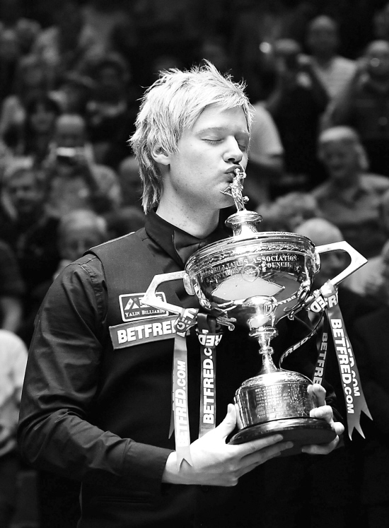 5月4日,在斯诺克世锦赛决赛中,澳大利亚选手罗伯逊以18:13击败多特,夺得冠军。 新华社发