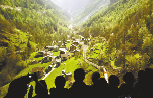 欣赏阿尔卑斯山景色