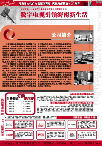 | 第011版:海南省文化广电出版体育厅 庆祝海南解放60周年 |