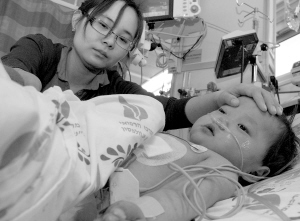 5月4日,患先天性心脏病的中国孤儿钱保鑫在以色列特拉维夫的沃夫森医疗中心接受治疗。为纪念中以两国建交18周年,以色列资助18名中国患病孤儿接受治疗,钱保鑫是其中之一。钱保鑫在以色列手术获得成功,昏迷12天后于5月3日苏醒。 新华社发(戴夫·本德摄)
