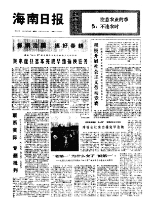 礼昌大队是琼海县农业学大寨先进单位。他们学习大寨的根本经验,坚持以阶级斗争为纲,实行科学种田,水稻连年夺高产。公社每次生产大检查,总是评得第一名。于是,人们把礼昌叫做”老第一”。可是,去年晚造生产开始,不知从哪里吹来一股风,说礼昌“只拉车,不看路”,是“唯生产力论”的典型。这股冷风,使一些干部不那么大胆抓生产了。结果,晚造生产搞得不好,公社组织大检查,竟得了个“倒数第一”。“四人帮”被揪出来后,大家才弄清了那股风是“四人帮”刮起来的,“老第一”变成“倒数第一”,是受“四人帮”毒害造成的。