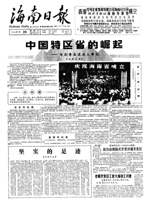 就在这历史的瞬间,海南人民翘首以盼的海南省宣告诞生了。