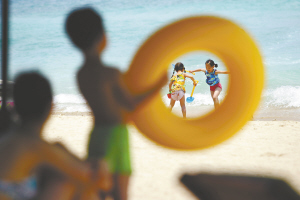 | 在三亚市西岛旅游景区,小游客们正在沙滩上快乐玩耍。三亚市委、市政府不断加大对当地旅游环境的整治与管理力度,吸引了越来越多的游客到此尽享假期的悠闲与快乐。