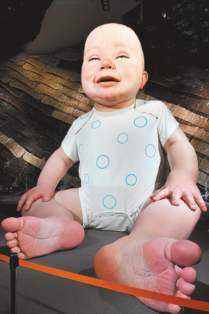 跟随着第二展区里西班牙城市从近代到现代的变迁,走进“孩子”展区。坐高达6.5米,会呼吸、会眨眼的仿真娃娃“小米宝宝”笑意盈盈地等候着参观者,并可呈现出70多个不同的面部表情。