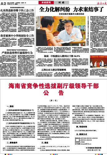 第067版 : 乐东黎族自治县 海南省第一中级人民法院热烈祝贺海南日报创刊6