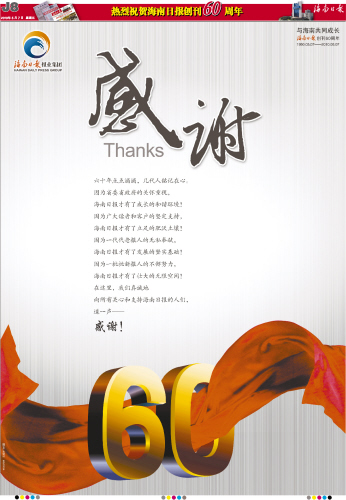 第058版 : 热烈祝贺海南日报创刊 60周年
