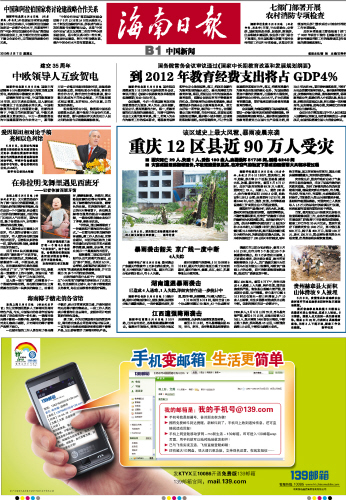 | 海南日报 中国新闻 009 2010-05-071 2010年05月07日 星期五 |