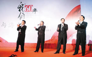 “我们1988年就代表总政歌舞团,出访了前苏联、波兰、匈牙利、罗马尼亚等国家,那时还年轻呢,现在我们都已经是60多岁的人了。”来自解放军总政歌舞团的红星四重唱第一男高音歌唱家叶宝根告诉记者,“这次来参加海南日报60周年庆祝晚宴,我们准备演唱一首老歌《唱支山歌给党听》,一首新歌《两只蝴蝶》。”