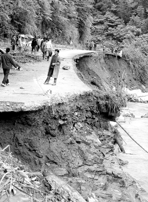 | 5月8日拍摄的湖南省娄底市新化县奉家镇被冲毁的公路。 新华社发(郭国权 摄) |