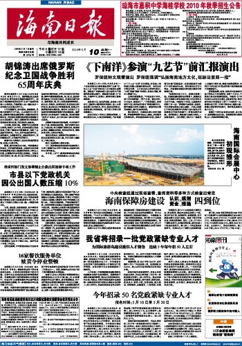 | 海南日报 头版 001 2010-05-101 2010年05月10日 星期一 |