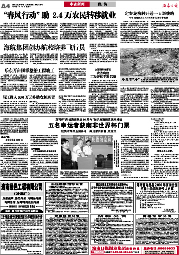 | 海南日报 本省新闻 004 2010-05-101 2010年05月10日 星期一 |