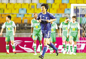 | 水原三星球员李玮锋(前)从失球后沮丧的北京国安队球员身边跑过。 新华社发 |