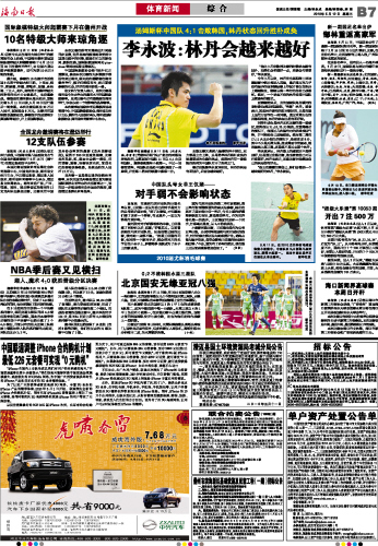 海南日报 体育新闻 015 2010-05-121 2010年05月12日 星期三