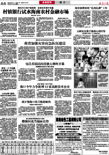 海南日报 本省新闻 006 2010-05-121 2010年05月12日 星期三