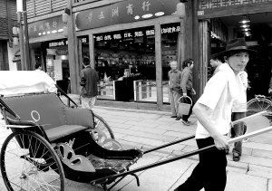 5月12日,具有浓重仿古特色的人力黄包车亮相榕城古街———福州三坊七巷。 “三坊七巷”是福州历史文化街区,基本保留着唐宋遗留下来的巷坊格局和大量明清时期古建筑。 近年来,福州市加大福州三坊七巷的保护力度,经过修复,一批昔日的风景逐步得以再现。 新华社记者 张国俊 摄