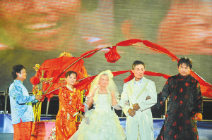 今年69岁的张兰玉是屯昌县屯城镇逢田村人,她也是参加今晚文艺晚会的几名年龄较大的老人之一,参演完《爷爷奶奶和我们》舞蹈后,她有些舍不得走下舞台。张兰玉激动地告诉记者:“穿婚纱的感觉真好,真舍不得脱下婚纱。”