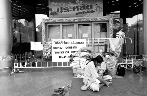 集会周边地区摊贩和公司13日纷纷暂停营业,该地区的外国驻泰国使馆也提前关门。