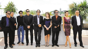 | 评委会主席蒂姆·伯顿(右三)偕英国女演员凯特·贝琴萨(右二)、好莱坞男星本尼西奥·德尔·托罗(左四)等8位评委亮相。 |