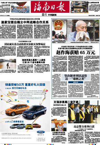 海南日报 中国新闻 009 2010-05-141 2010年05月14日 星期五