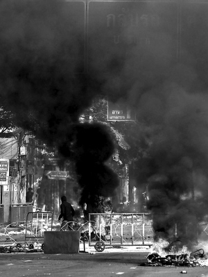 ③5月15日,泰国首都曼谷的金融区入口浓烟滚滚。 新华社/法新