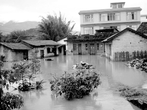 | ↑这是广西恭城瑶族自治县栗木镇上宅村被淹的房屋。 |