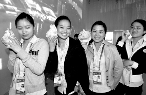 | 在上海世博会海南馆,游客拿起海螺“聆听”蓝色大海的声音。