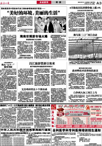 海南日报 本省新闻 003 2010-05-181 2010年05月18日 星期二