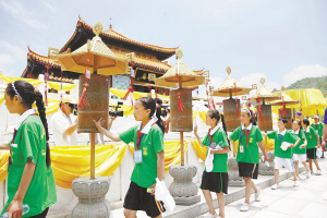 | 5月18日,20名玉树灾区孩子三亚南山祈福。 本报记者 苏建强 通讯员 陈文武 摄 |
