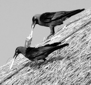 据外电19日报道,两名英国游客日前在马尔代夫捕捉到令人啼笑皆非的一幕,几只乌鸦煞是有型的叼起香烟,在房顶尽享“快感”。 报道称,茱迪和埃利斯在马尔代夫度假时意外发现一只乌鸦竟叼着一包香烟从他们头顶飞过,并降落在临近的草屋屋顶上。 令人诧异的是,这只乌鸦颇为熟练地从烟盒中叼出一根香烟,站在屋顶的一角细细“品味”,状态十分滑稽。而它的一只同伴见状也做出了几乎同样的行动。 茱迪称,他们似乎是在“抽烟”以让自己休息片刻,即使烟并未点燃,但乌鸦们的举动还是让人忍俊不禁。 来源: 中新网