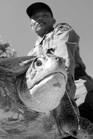 5月20日,在印度尼西亚度假胜地巴厘岛,游客抬着被救的海龟送其入海。 此批海龟共71只,是当地警方在打击偷猎海龟行动中从一处仓库查获的。据不法分子交代,他们本计划将这些海龟以高价卖出。 新华社/法新